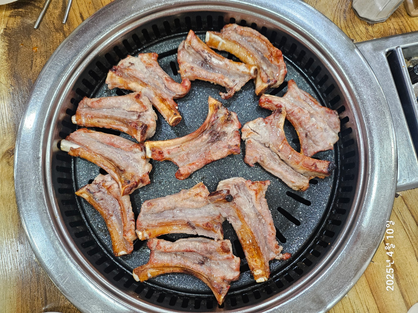 등갈비 구이가 나왔어요. 한꺼번에 안 나오고3인분 먼저 올려주시네요. 12개입니다.