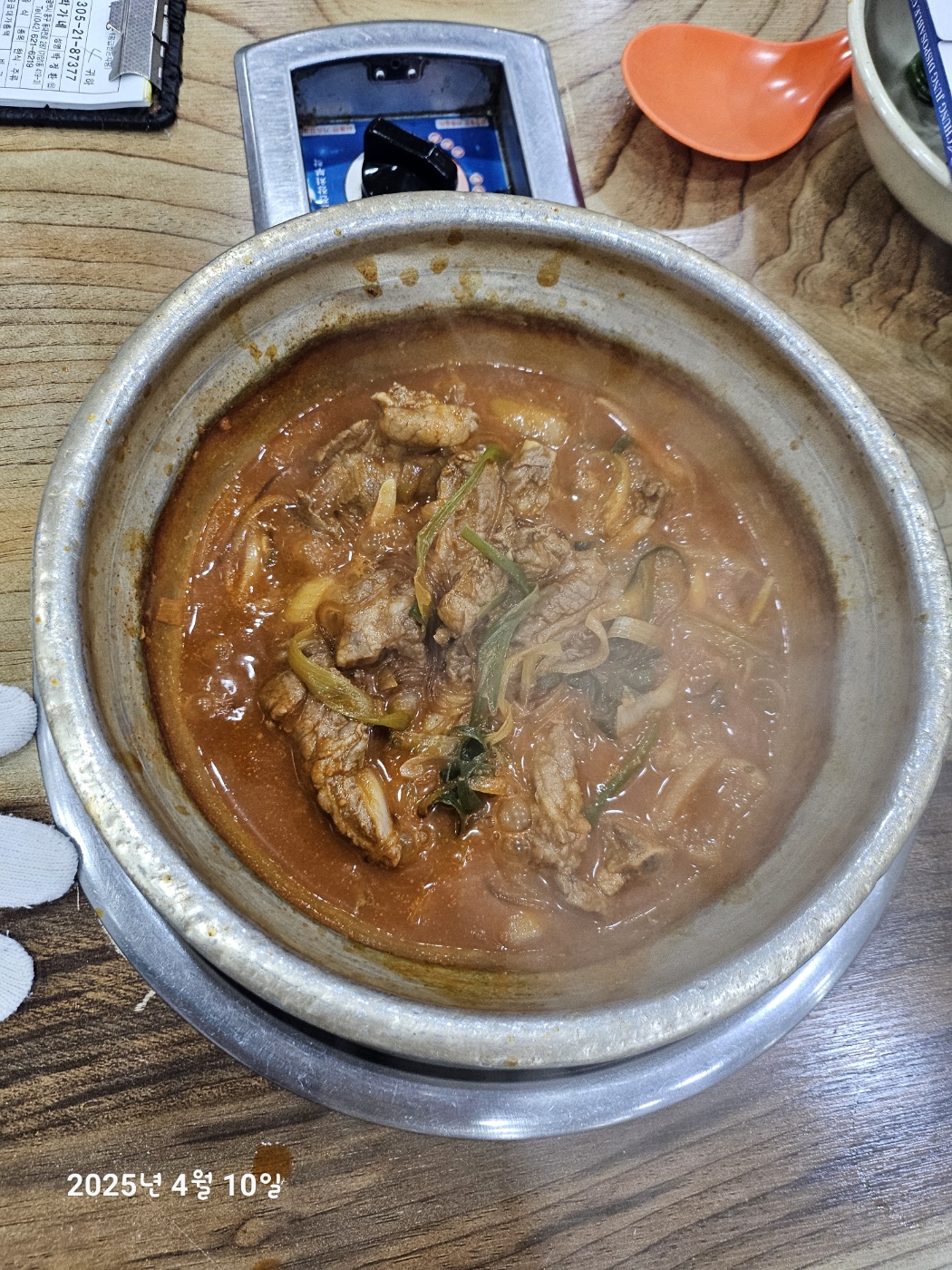 양푼등갈비찜은 시키고 금방 나왔어요. 고기는 다 익혀서 나오기 때문에 국물을 조금 더 졸이고 먹었습니다.