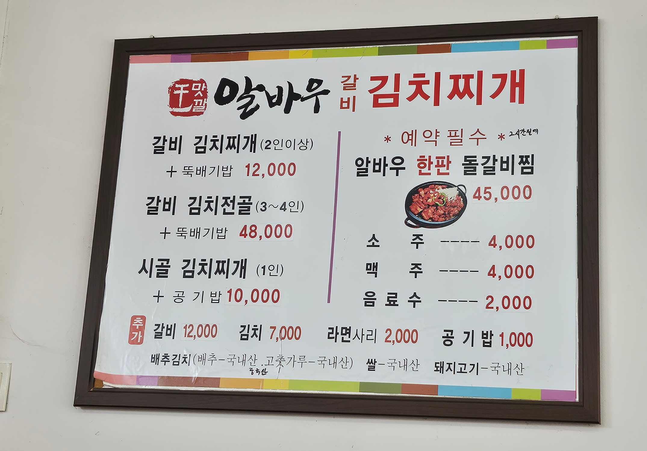 상호명: 알바우 갈비 김치찌개 전문점